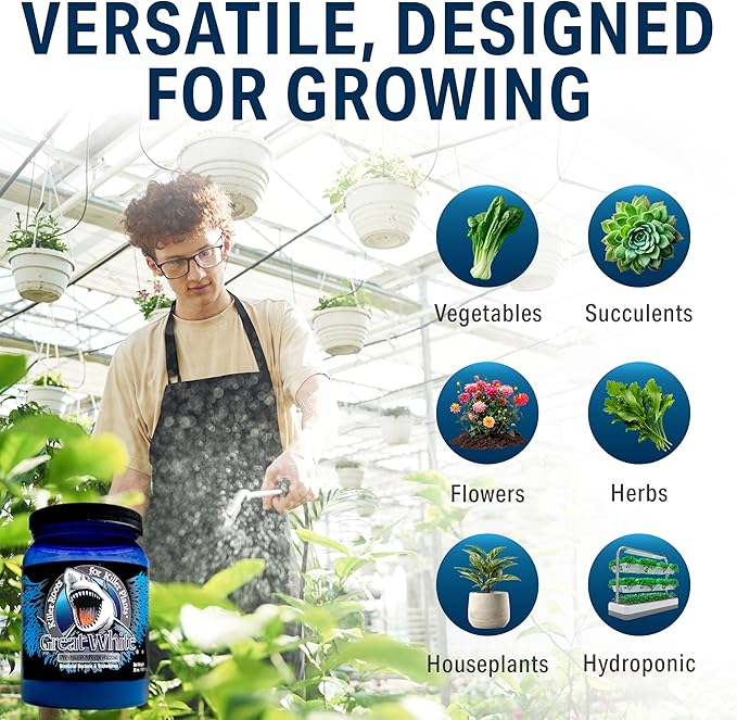 Suitable for All Growing Systems: Whether you're growing in soil, hydroponics, or other soilless mediums, Great White is compatible with all growing systems.