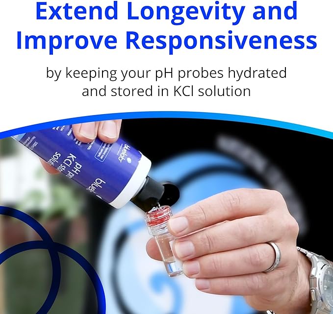 Clean lab quality pH and EC probes with Bluelab pH and Conductivity Probe Care Kit; General uses include growing tent, reservoir, water tank, and hydroponic system