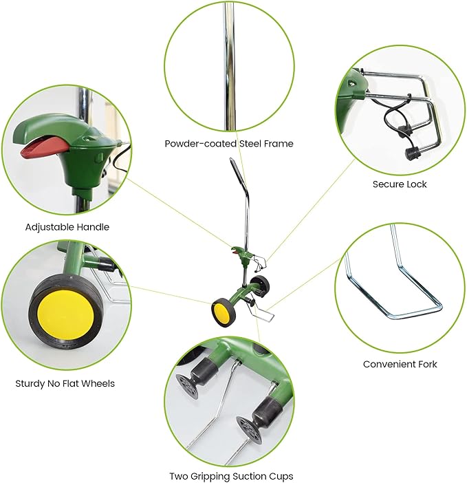Floor-Safe Scratch Protection: Upgraded suction grips latch onto pot bases without dropping, while non-marking treads on flat-free wheels protect hardwood/tile floors from scratches – perfect for indoor/outdoor transitions.