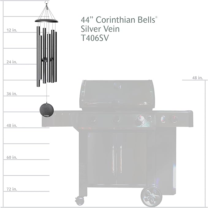 Corinthian Bells by Wind River - 44 inch Silver Vein Wind Chime for Patio, Backyard, Garden, and Outdoor Decor (Aluminum Chime) Made in The USA