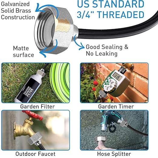ADJUSTABLE SPRAY MODE: Our sprinkler nozzle is made of solid copper.You can adjust the spraying method by rotating the nozzle from spray to straight injection,Through adjust the sprinkler direction,it could covered around 10ft diameter