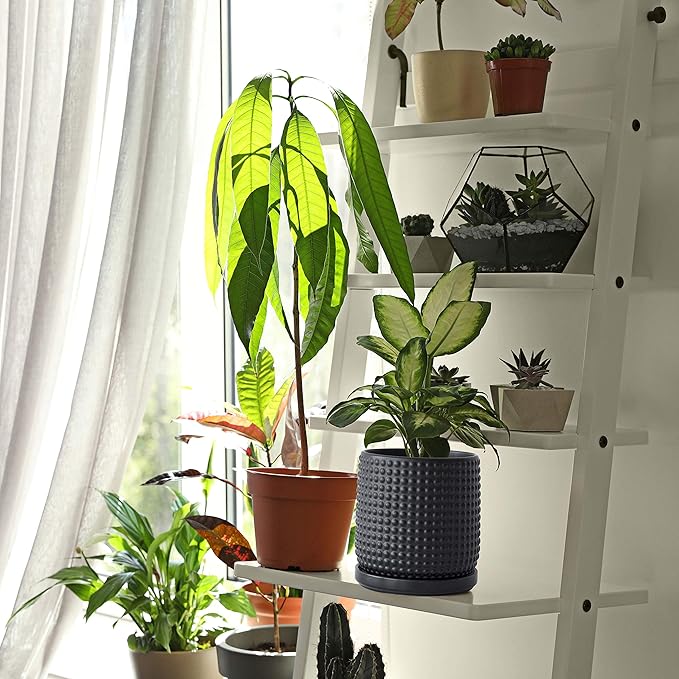 D'vine Dev 6 Inch Ceramic Beaded Stoneware Planter Pot - Flower Pot with Drainage Holes and Saucers for Indoor Succulent Plants or Flowers, Ebony Matte, 27-C-X-6