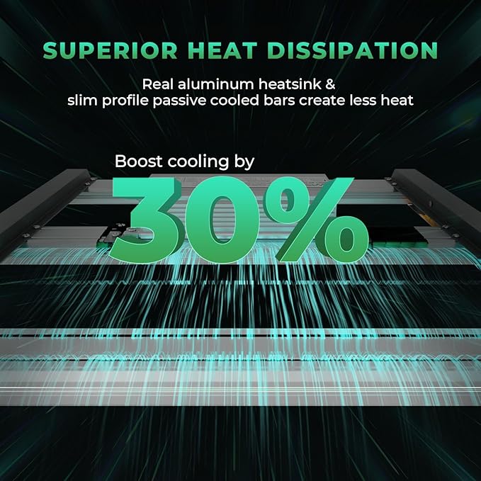 SUPERIOR HEAT DISSIPATION: The the Aluminum heatsink with slim profile bars reduce heat keeping your growing space at the perfect temperature; real Aluminum heatsink & 4 slim profile passive cooled bars (THINNER & LARGER surface) creat less heat, drop 50% in electricity bill than HID lights!