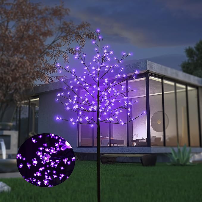 【Pre-Lit Cherry Blossom Tree】Glistening with all the magic of a fairytale wonderland, our 6Ft Cherry Blossom Trees are beautifully illuminated with a shower of Blossom flowers.3 Colors are available to choose Warm White,Pure White,Purple.Add an exotic and illuminating touch to your interior or exterior décor with this dazzling lighted cherry blossom tree.