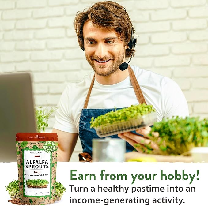Start your journey towards healthier eating and sustainable living with HOME GROWN Alfalfa Sprout Seeds.Grow Your Own Alfalfa Microgreens Transform your home into a green haven with HOME GROWN Alfalfa Sprout Seeds. Perfect for sprouting indoors or outdoors. Packed with nutrients, these microgreens are rich in vitamins and minerals, making them an excellent addition to salads, sandwiches, and smoothies. Enjoy the satisfaction of growing your own fresh greens right from your kitchen!