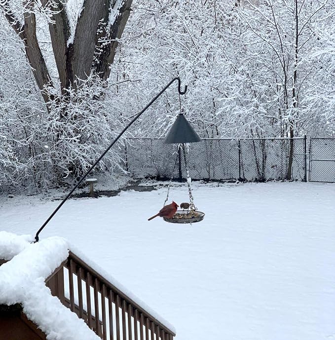 Deck Hook Smart Design:43-inch bird feeder pole, a longer distance guard against squirrels. Things like bird droppings and seeds all fall off the deck, making it easier for you to clean up.2 Packs
