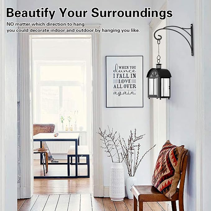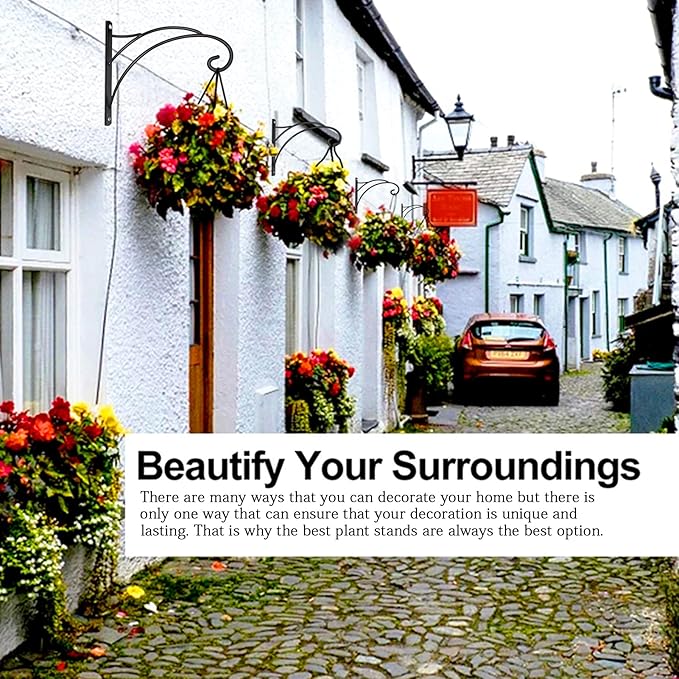 🌼Fashion & Retro Design: Primitive curls and swirls design with country look, black coating give them an elegant and retro feeling, which will make your courtyard more beautiful and charming. The black appearance of the outdoor hanging brackets not only matches well with the wall, but also with the hanging decorations.