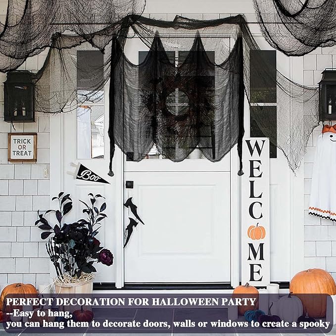 ZeeDix 6 Pack Black Halloween Creepy Cloth 30X75 Inch - Halloween Cheesecloth Decoration Spooky Scary Gauze Black Cheese Cloth for Party Supplies Outdoor Yard Home Wall Doorway