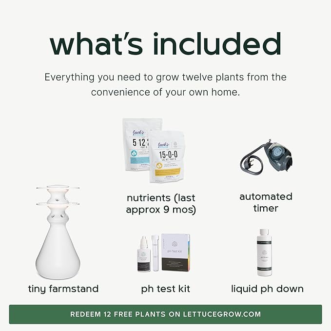 WHAT'S IN THE BOX: Your new hydroponic system kit includes the Farmstand tower, QR code on your Farmstand packing slip to redeem seedlings, 2 glow rings, water pump, power cord, timer, plant food for 130+ plants, pH testing kit, pH Down for water health, scoops and a cute sticker. Please note: Your order will ship in two boxes that may arrive separately. Box 1 contains the Glow Rings. Box 2 contains everything else.