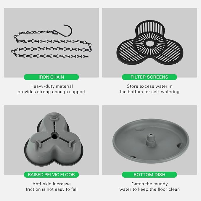 • Different Combinations: You can stack 2 or 3 or 4 tier; This planter can be hang with chains or used on a cylindrical rod