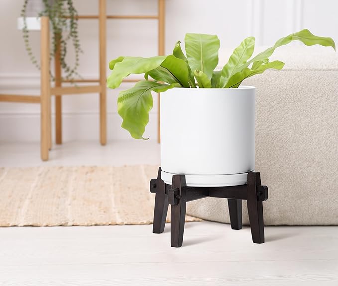 Aesthetic Design: The minimalist cylinder-shaped design ceramic planter is combined with a handcrafted, solid wood stand that matches perfectly together and looks great in any home.