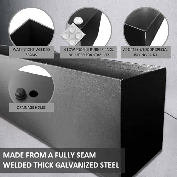 DIMENSION – Length: 32", width: 3.25”, height: 3.5” Inch. Modern style, Simple structure, generous and stylish, suitable for more decorative styles. Also included with 4pcs rubber pads to help provide stability and protect your surfaces from being scratched or damaged, drainage hole with plug included. *Plants is not included*