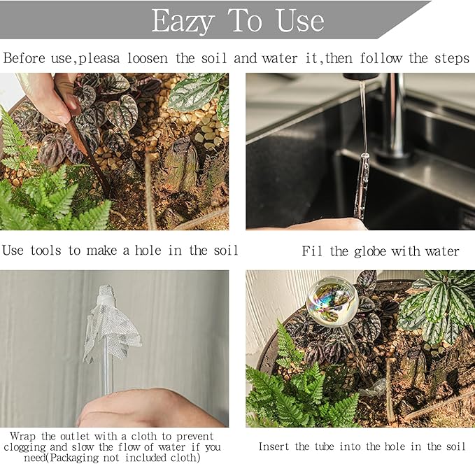 【Easy to use 】All you need to do is fill the watering globe outdoor and indoor bulbs and push the glass straw into soil. The water will slowly be dispensed and will continue automatically watering your plants when the soil is dry.