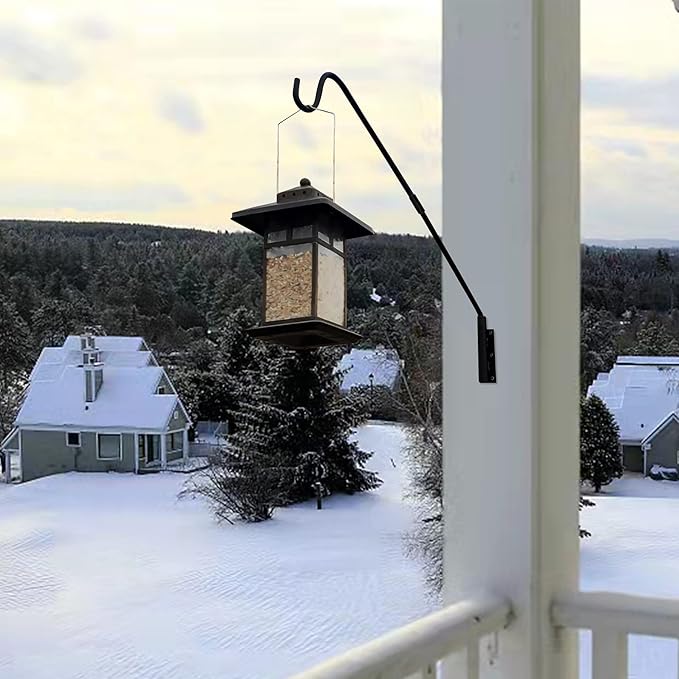 Premium Quality - Our weather-proof powder-coated metal maintains its subtle black color and quality season after season. Solid bracket and curved shepherd hook helps securely hold items. Suggested max hanging weight: 11 lbs (5 kg)