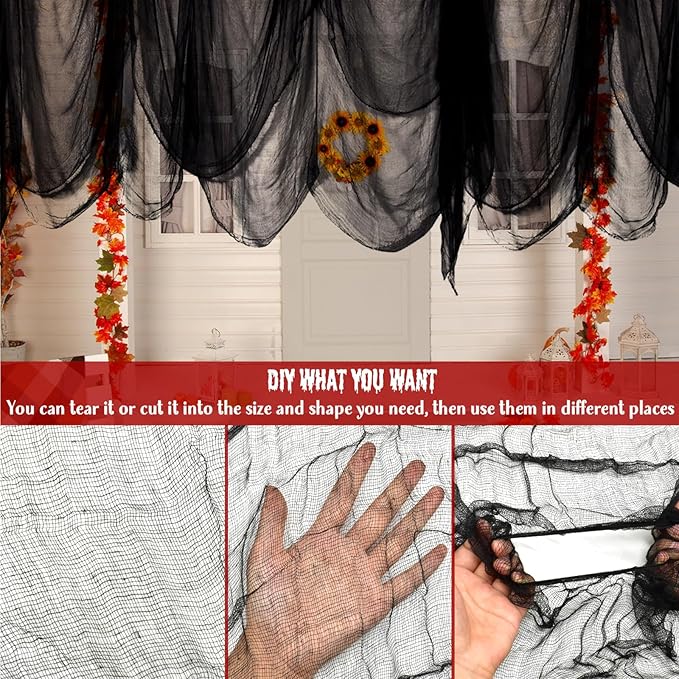 👻【Halloween Creepy Cloth】: You will get 1pcs black Halloween creepy cloth decoration, which is suitable for decorate different scenes to creat spooky atmosphere, like walls, windows, porch, couches and tables etc,.