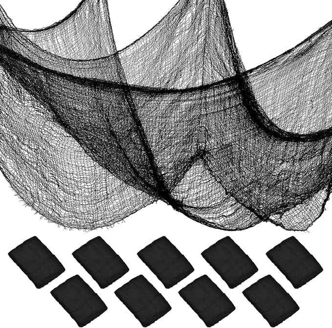 ZeeDix 9 Pack Black Halloween Creepy Cloth 30 x 75 Inch Halloween Decoration Spooky Scary Gauze Cloth Black Cheesecloth for Party Supplies Outdoor Yard Home Wall Doorways