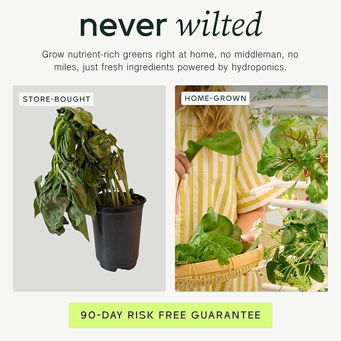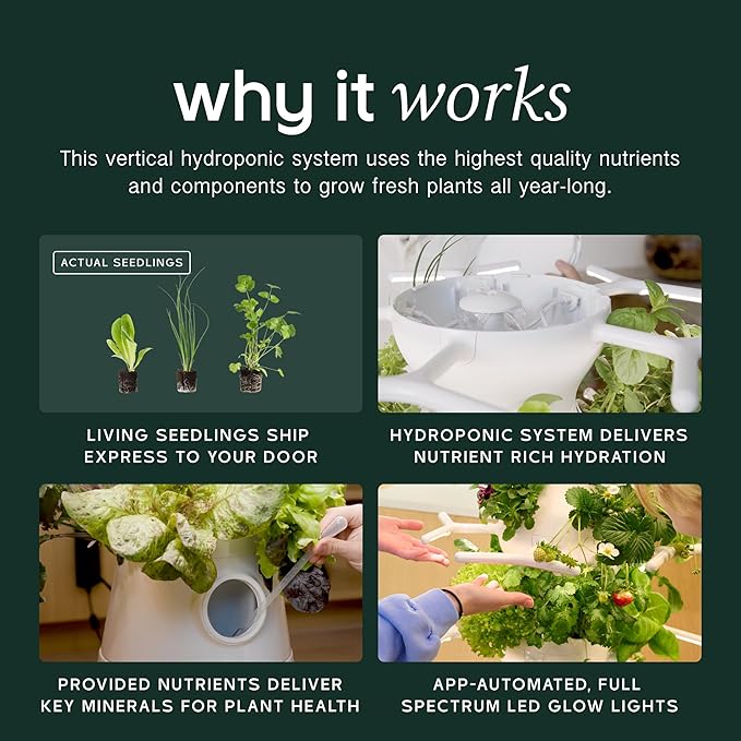 Fast, Flavorful Harvests: Snip fresh greens in just three weeks with pre-grown living seedlings for 2x more rapid growth when compared to seeds, included in this vertical farming tower; grow 100+ seasonally available lettuces, herbs and small veggies with our indoor vertical hydroponics tower