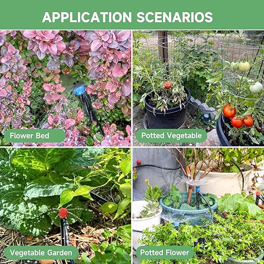 Two Sprayer Varieties: Tailor your watering with 15 drip emitter streams and 15 drip emitter vortexes. Perfect for adjusting water flow to meet the diverse needs of your garden, ensuring healthy plant growth.