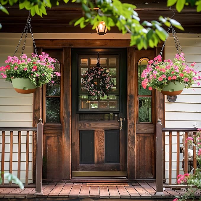 【Thicken Material 10 inch Hanging Plant Pots】Our plant hanging basket crafted from sturdy plastic, these 10 inch hanging planters withstand various harsh weather conditions for extended periods, ensuring planters withstand various climates and temperatures without fading or cracking, even during prolonged outdoor use. Lightweight and versatile self watering wall planter, each hanging baskets for plants set comes with two S-shaped hooks for easy installation.