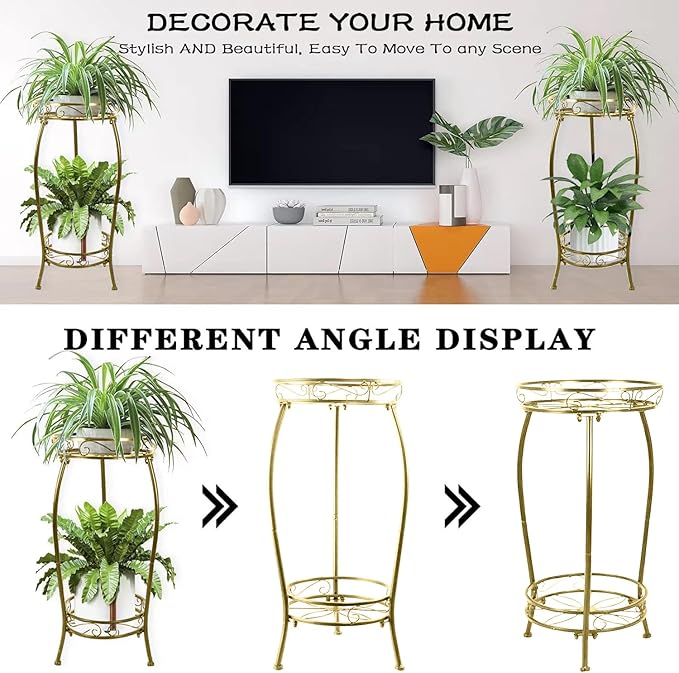 SIMPLE STYLE DESIGN - This 2 tier plant stand simple and elegant design is suitable for medieval decoration, classic, modern, light luxury, European, American and other furniture decorations. Widely use for indoor or outdoor. such as gardens,yard, porch, balconies, hallways, bathrooms, and in shops, homes, offices, etc.