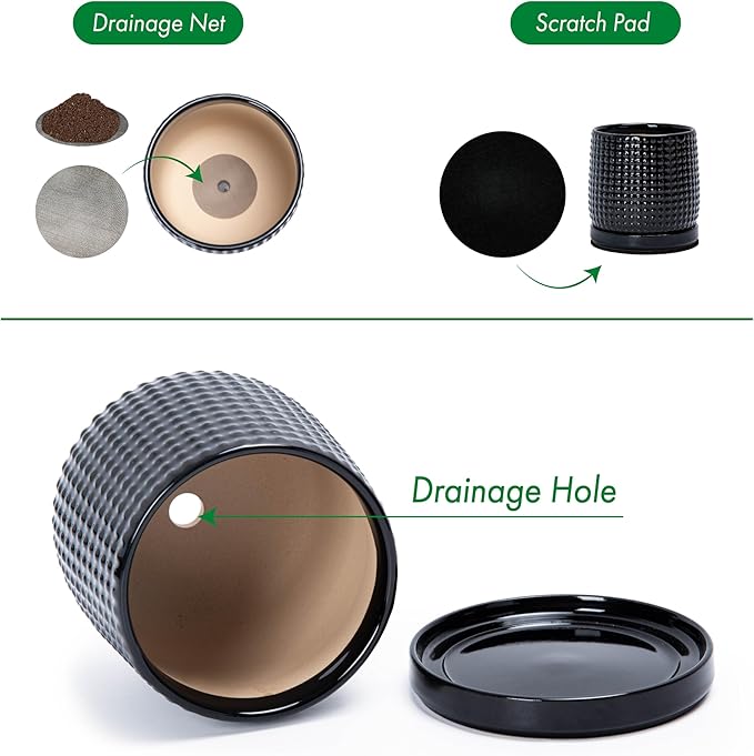 >> Drainage Net and Pad - A stainless-steel drainage mesh net is also included to prevent soil from falling off the pot. Another protective pad is included to protect tabletop wood surface from scratches.