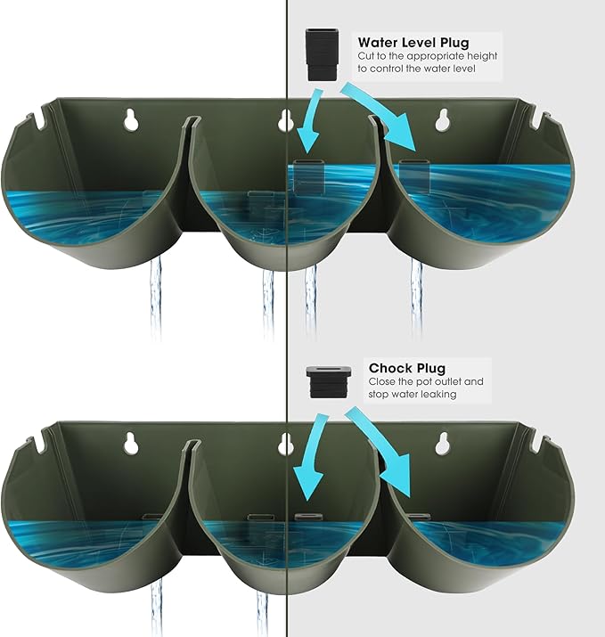 STACKED VERTICAL DESIGN: The water filtration system from top to bottom can effectively save and retain moisture; Includes 6x water filter panels used to prevent leaves and solid impurities from blocking the outlet of the pots, 24x water level plug used to control the water level and 24x chock plugs to close the pot outlet and stop water leaking