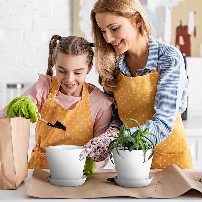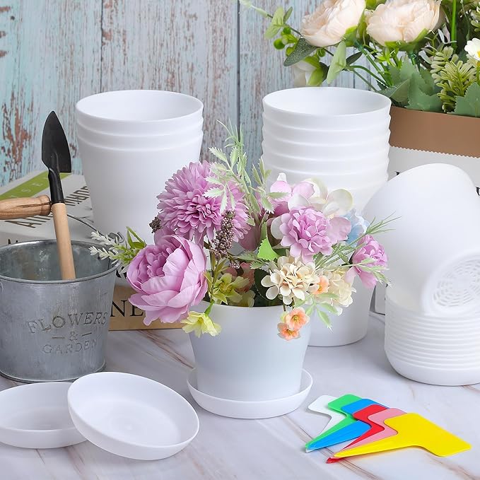 Package includes: you will receive 16 packs of flower plant pots in a solid white color; each plastic planter comes with a matching tray, making the plants nursery pots ideal for decorating living rooms, courtyards, or offices and adding a splash of color to your life; additionally, you will receive 24 packs of colorful plant labels to document the growth information of your plants