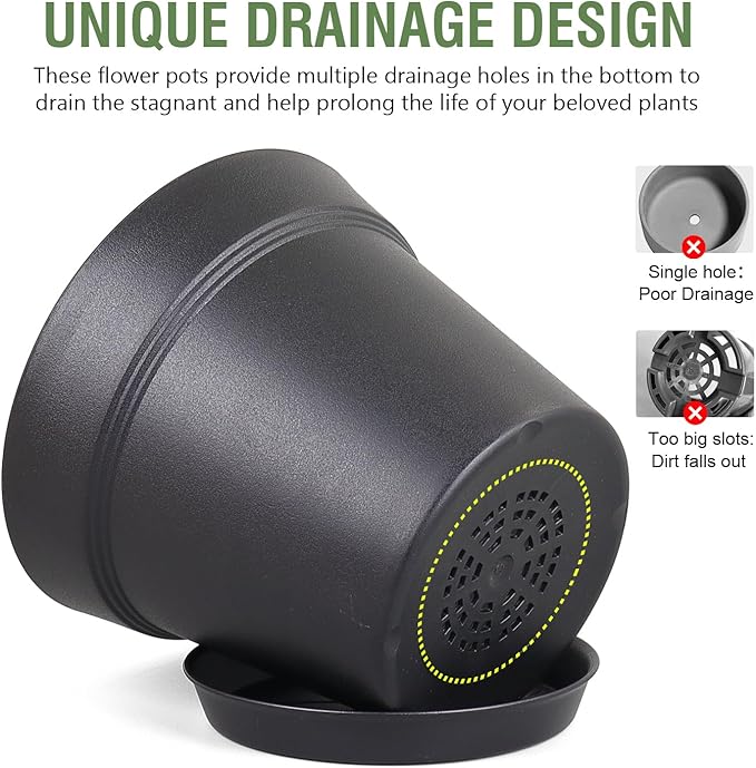 【Lightweight and Durable】Crafted from high-quality plastic, these flower pots are both lightweight and incredibly durable. They are designed to withstand everyday wear and tear, making them a reliable choice that won’t easily break or crack, even with regular use.