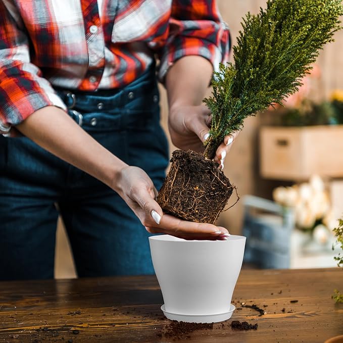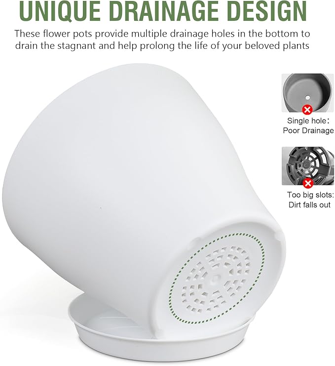 【Drainage Holes and Trays】Each plant pot features well-designed drainage holes at the bottom to ensure proper water flow. Additionally, saucers catch excess water, keeping your growing area clean and tidy while also ensuring that your plants remain hydrated without becoming waterlogged.