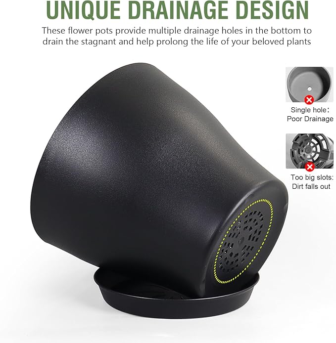 【Lightweight and Durable】Crafted from high-quality plastic, these flower pots are both lightweight and incredibly durable. They are designed to withstand everyday wear and tear, making them a reliable choice that won’t easily break or crack, even with regular use.