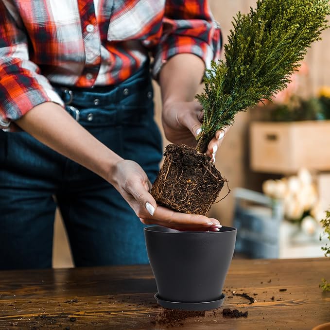 【Drainage Holes and Trays】Each plant pot features well-designed drainage holes at the bottom to ensure proper water flow. Additionally, saucers catch excess water, keeping your growing area clean and tidy while also ensuring that your plants remain hydrated without becoming waterlogged.