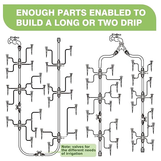 Enhanced Tubing Design: Our main tubing has been upgraded to withstand higher water pressure, ensuring durability and reliability. With a generous 40FT length, which can be easily divided into two main tubes, and two faucet connectors included, setting up multiple drip irrigation systems is a breeze.