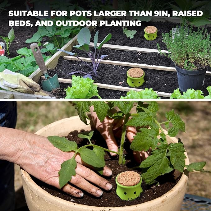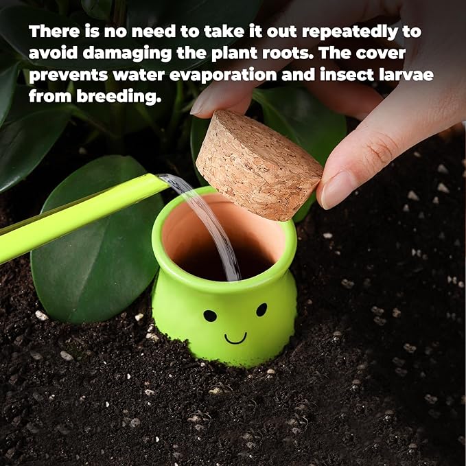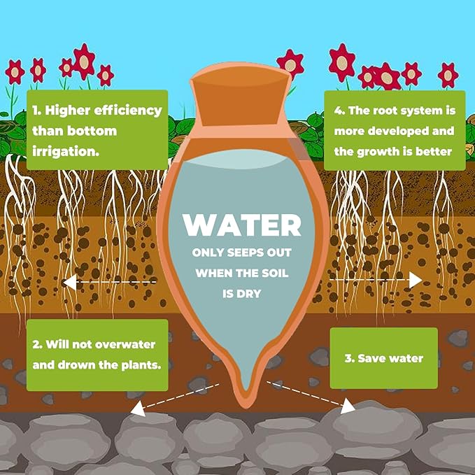 💧 [No need to take it out repeatedly to protect the plant's root system] These ollas self watering planter insert do not need to be taken out repeatedly during use, which can well protect the plant's root system and avoid root damage. The covered design can effectively prevent moisture evaporation.