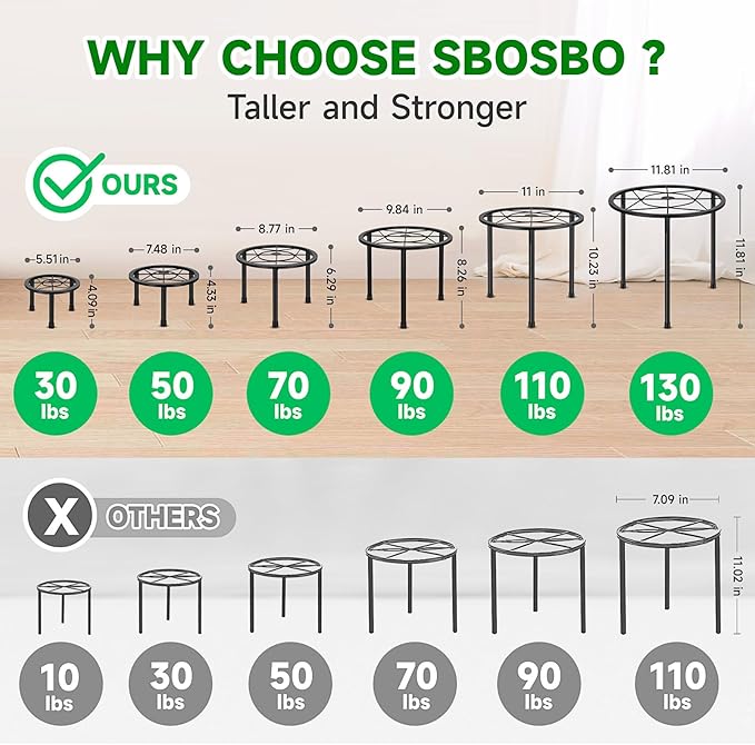 6 Pack Metal Plant Stand: The Package includes 6 pack metal plant stands for indoor and outdoor use. Each metal plant stand is available in different sizes is suitable for placing various flowerpots. The elegant style plant stands are coordinated with most home and outdoor environments, you can place the metal plant stand in your home, living room, corridor, sofa corner, hallway, garden, patios, and turns your small space into a neat and attractive scenery