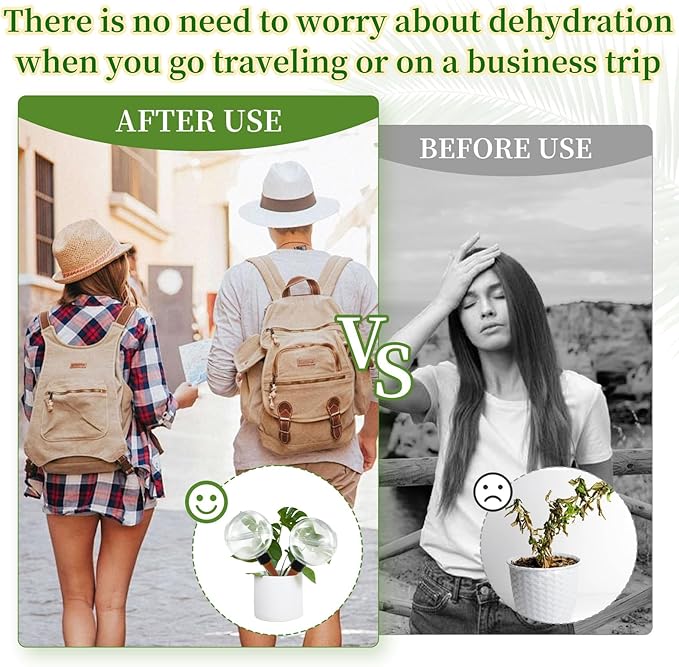 【What it's about】:Our package includes 6 indoor automatic plant watering balls to keep plants alive while you're away. Automatic watering systems for potted plants ensure that the plants stay hydrated while you are away.