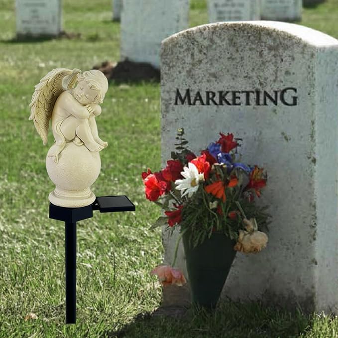 【Solar Angels for Cemetery Grave】Solar angel lights are great for decorating gardens, lawns, pathways, patios, sidewalks, fences, backyard decorations and more. It can also be used in graves, cemetery gravesite decorations to honor departed loved ones, relatives.