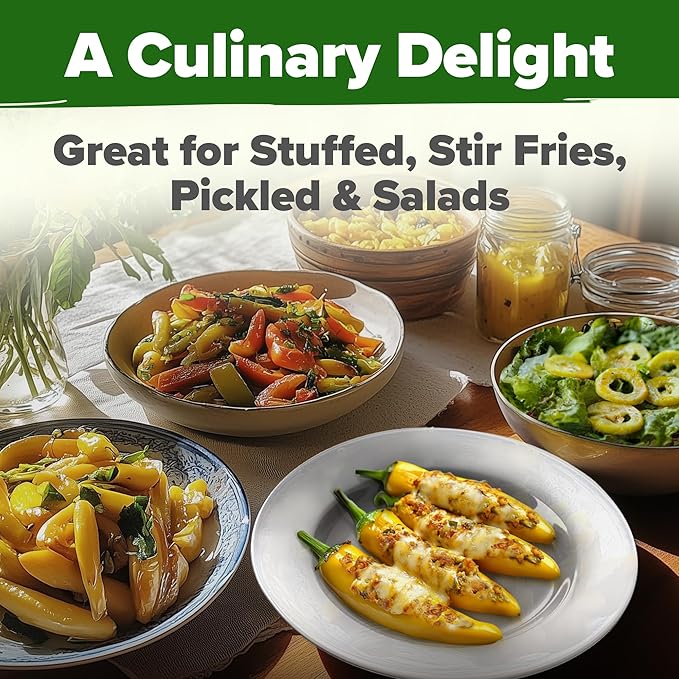 CONVENIENT, ORGANIZED PACKAGING - Enjoy the neatly organized packaging of these banana pepper seeds. The easy-to-store design ensures your seeds stay safe and accessible for planting, avoiding any mess or confusion.
