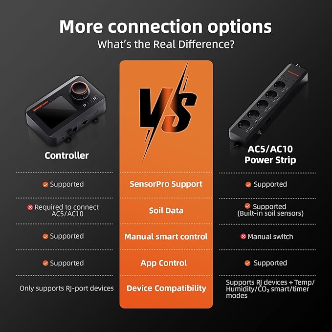 4-in-1 Sensor: The SF Sensor Pro integrates four key measurements(temperature, humidity, PPFD, VPD) into a single device. Real-time monitoring of multiple critical parameters within the growing environment, helping users optimize the microclimate for enhanced plant growth.Note: When using SensorPro, make sure to disconnect the original temperature and humidity sensor from the controller or power socket to ensure only one sensor is providing readings.