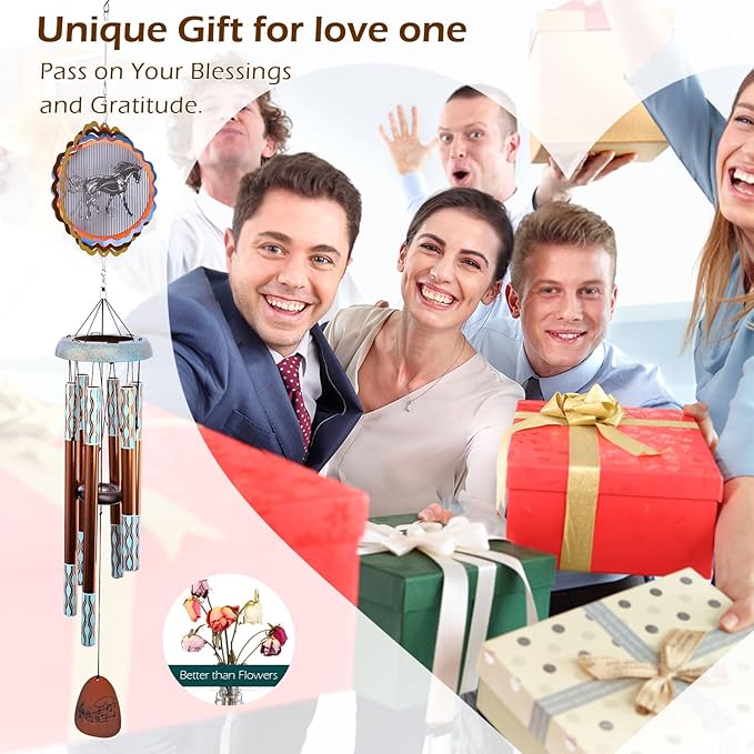 ♫【Unique horse gift for love one】Horse Windchimes outdoors given to friends on behalf of greetings to friends,given to the person you love on behalf of love,given to relatives on behalf of missing loved ones.The memorial wind chimes suitable for all occasions,like mother's Day,father's Day,Women's Day,anniversary,birthday,party,Thanksgiving,Christmas,New Year,housewarming,etc.As a Unique horse gift Choice for variety of people,like women,mom,friend,father,love one,colleague, neighbour,etc.Or as a thoughtful Memorial/Sympathy gifts for loss of a loved one.