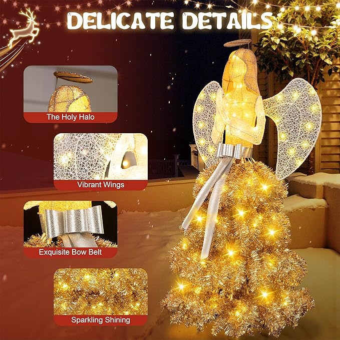 Easy to Assemble: This Christmas angel decoration boasts an easy installation process, designed for user convenience. It comes with a lightweight yet sturdy framework, allowing you to effortlessly position it wherever you desire. With no complicated assembly required, you can quickly set up this enchanting angel, making it a hassle-free addition to your holiday decor