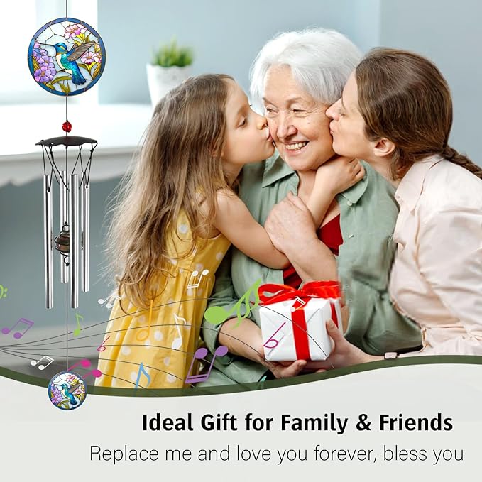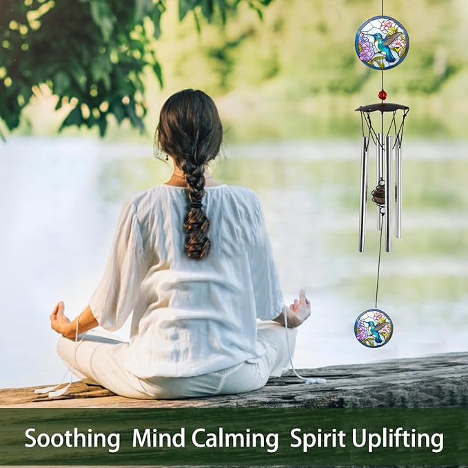 Wind Chimes for Outside 24" Hummingbird Wind Chimes Outdoor Home Patio Garden Decor Hummingbird Gifts Windchimes Outdoors Gift Ideas for Women Mom Grandma Sisters