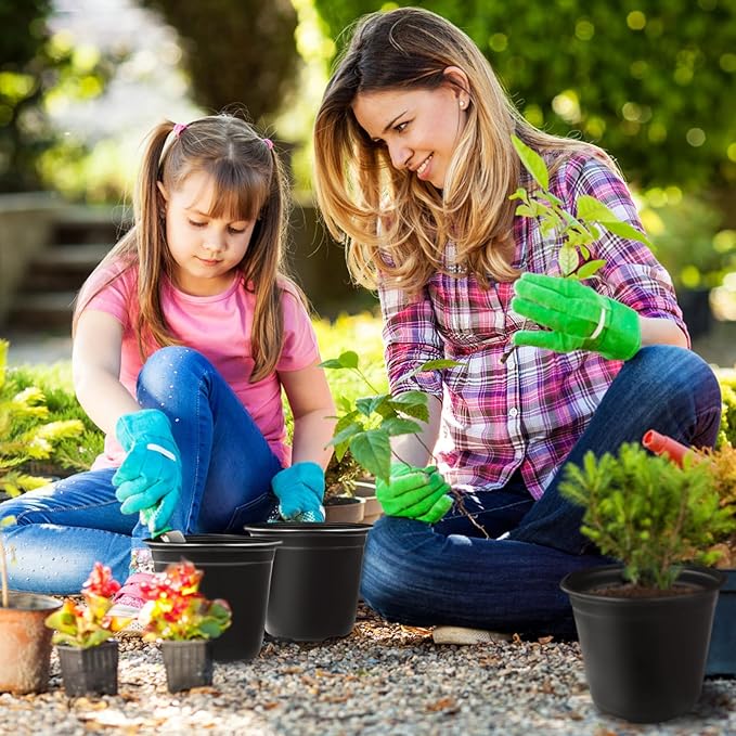 Drainage Design:12 small drain holes in these pot bottom can help soil drained and ventilated;and they are easy to handle and to stack.Classic black design to brighten up your living space.