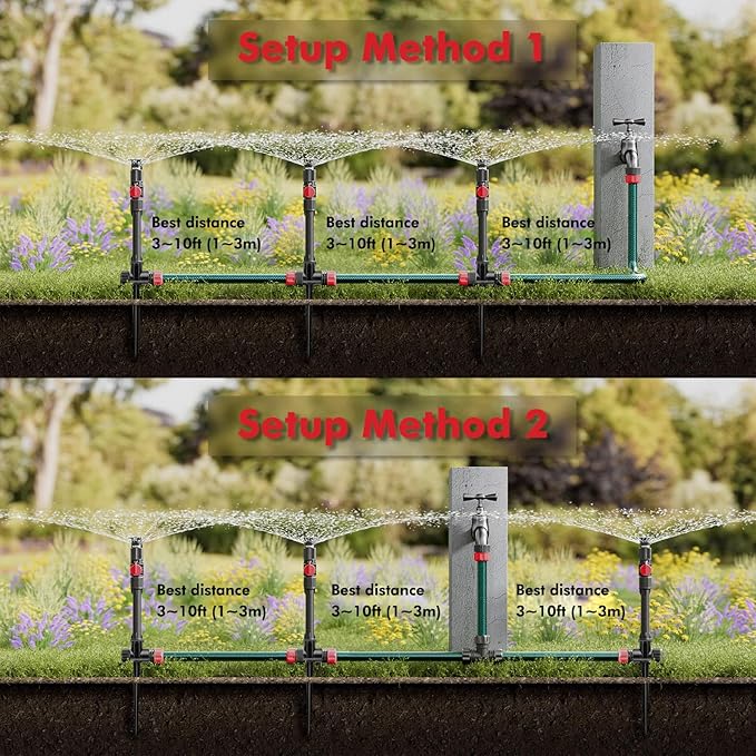 【Durable Material】Constructed with premium material, this sprinkler set is solid & strong to withstand hard impacts & heavy force. A long-lasting sprinkler system you can count on many years.