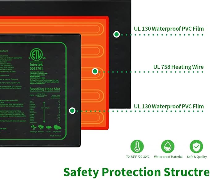 ETL Safety Certified - Ruyyi Seedling Heat Mat with ETL listed,Conforms with UL 499, Conforme à la norme UL 499,CSA C22.2 No64