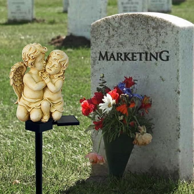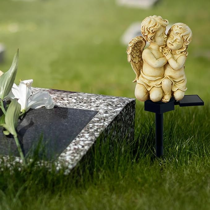 【Solar Angels for Cemetery Grave】Solar angel lights are great for decorating gardens, lawns, pathways, patios, sidewalks, fences, backyard decorations and more. It can also be used in graves, cemetery gravesite decorations to honor departed loved ones, relatives.