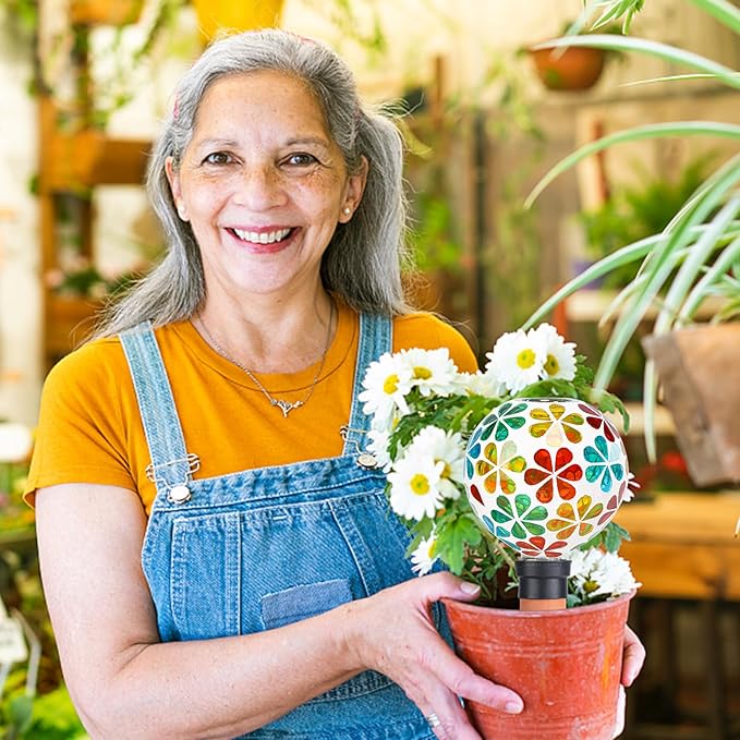 Save Time:The large plant watering globes is made of mosaic globes and terracotta clay.Self waterer spikes size is 9.88''x4.4''.Terracotta watering spikes work through osmosis to moisten the soil and the plant root.
