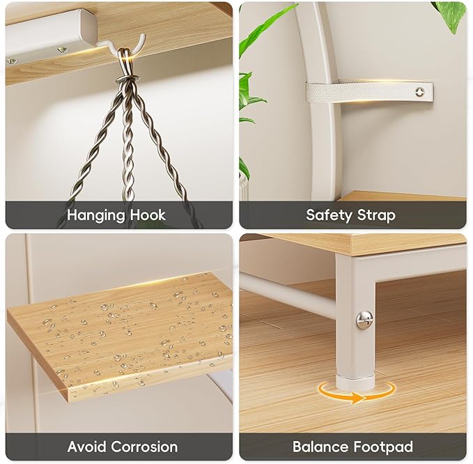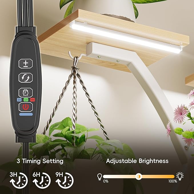 • [ Plant Stand with Grow Lights ] Boost indoor plant growth with full-spectrum, timer-enabled, adjustable grow lights. Three-head design ensures even light for all tiers. Place anywhere indoors—no need to move plants for sunlight