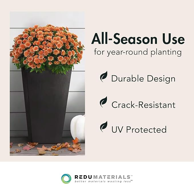 Outdoor Planters: Heavy-duty and durable for all seasons, designed to resist tipping over; 11in W x 11in D x 20in H