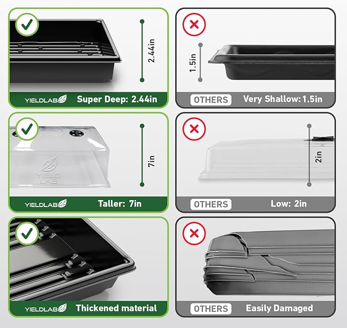 COMPLETE YOUR SETUP: Our 7-inch tall humidity dome is compatible with our 10x20 trays and heat mats, seamlessly integrating into your gardening routine. Providing essential protection and accommodating various plant heights, this purposeful combination ensures optimal conditions for robust vertical growth. Choose quality materials to complete your set and set the stage for a successful and rewarding gardening experience.