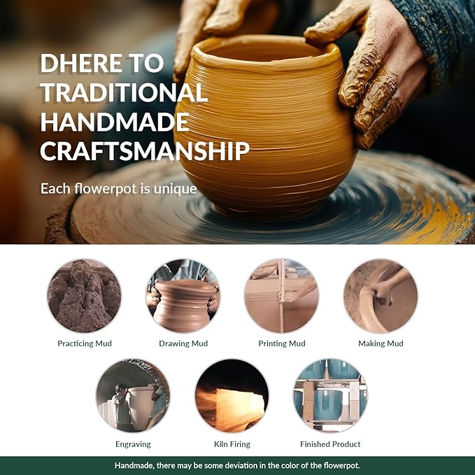 【Drainage Holes & Drip Pan 】The planter pot with drainage holes and saucers allows water to run off. No worries about over-watering your bonsai succulent! Better water infiltration and air movement are allowed to stimulate root growth, which results in healthier plants. If you tend to overwater, the indoor planters with unglazed clay and drainage holes would be your helper